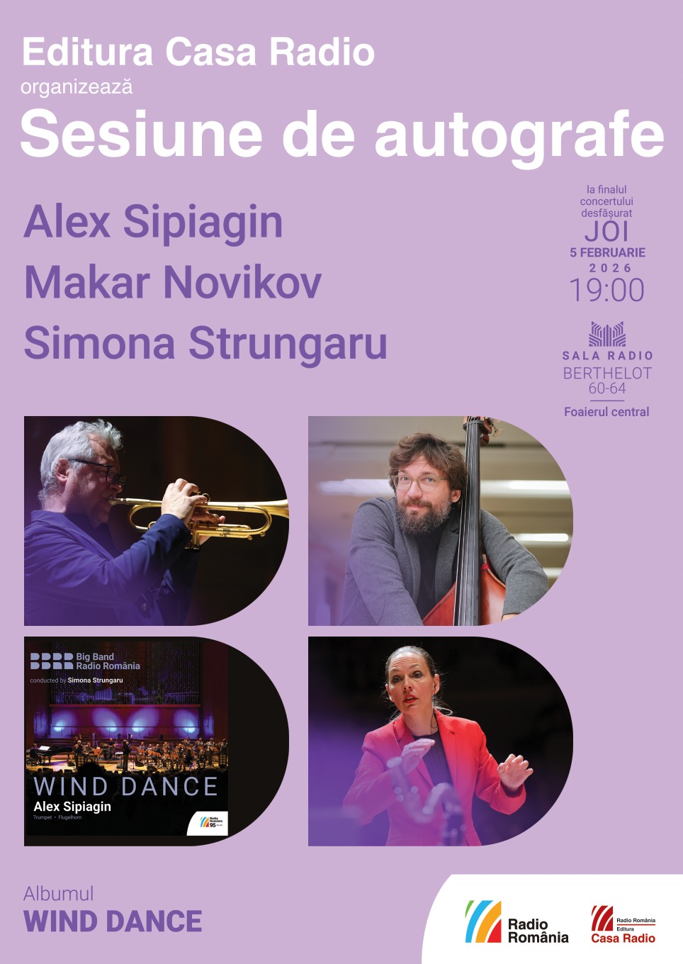 Cu ocazia acestui concert, Editura Casa Radio readuce în atenția publicului albumul „Wind Dance”, prin organizarea unei sesiuni de autografe cu Alex Sipiagin, Makar Novikov și Simona Strungaru, protagoniști ai CD-ului. Sesiunea de autografe va avea loc la finalul concertului, în foaierul central al Sălii Radio. Albumul „Wind Dance” reflectă un proiect muzical realizat pentru Radio România de trompetistul și compozitorul Alex Sipiagin, unul dintre cei mai creativi muzicieni ai scenei jazzului contemporan, împreună cu Big Band-ul Radio România dirijat de Simona Strungaru.