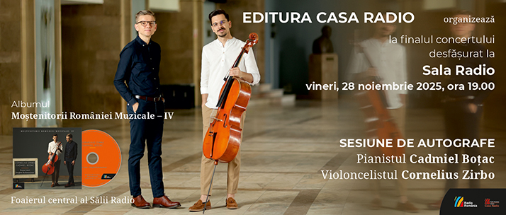 La finalul concertului, pianistul Cadmiel Boțac și violoncelistul Cornelius Zirbo vor acorda autografe pe noul disc apărut la Editura Casa Radio, în colecția „Radio România Muzical“: MOȘTENITORII ROMÂNIEI MUZICALE. IV. Cornelius Zirbo – violoncel; Cadmiel Boțac – pian; Franz Liszt, Serghei Rahmaninov. Sesiunea de autografe, organizată de Editura Casa Radio, se va desfășura în foaierul central al Sălii Radio.